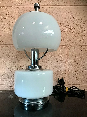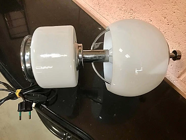 Lampada da appoggio “Space Age” in metallo cromato e opalina bianca, anni '70