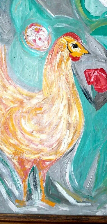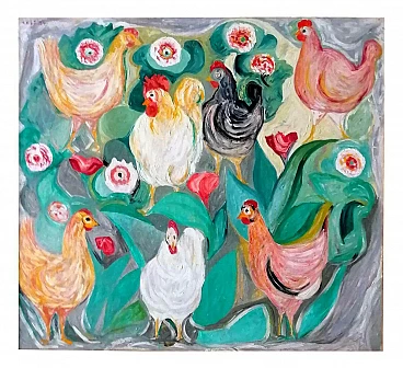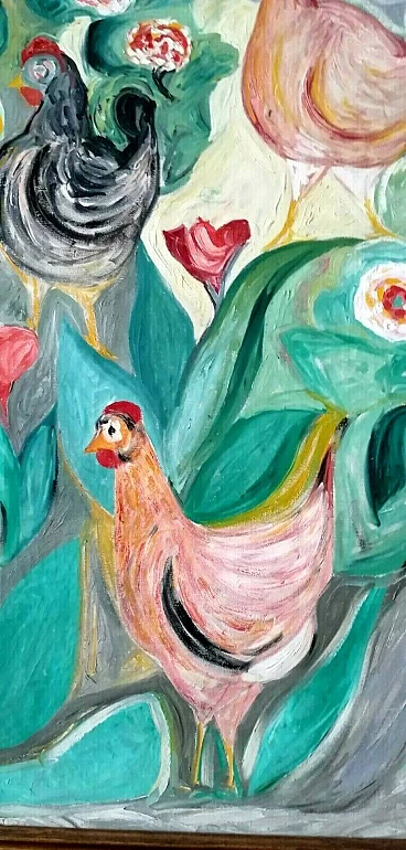 Olio su tela Galline di Giuseppe Cesetti, anni '60