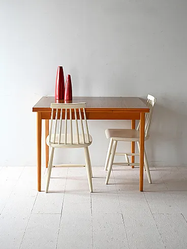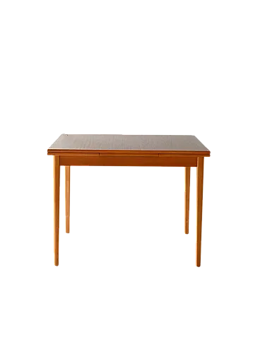 Tavolo anni ’50/’60 con struttura in teak, piano in formica e due allunghe laterali a scomparsa.