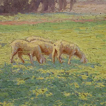 Paesaggio di Campagna con Gregge, olio su tavola, fine '800
