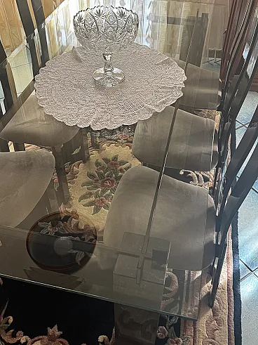 Tavolo cristallo molato e marmo, anni '90