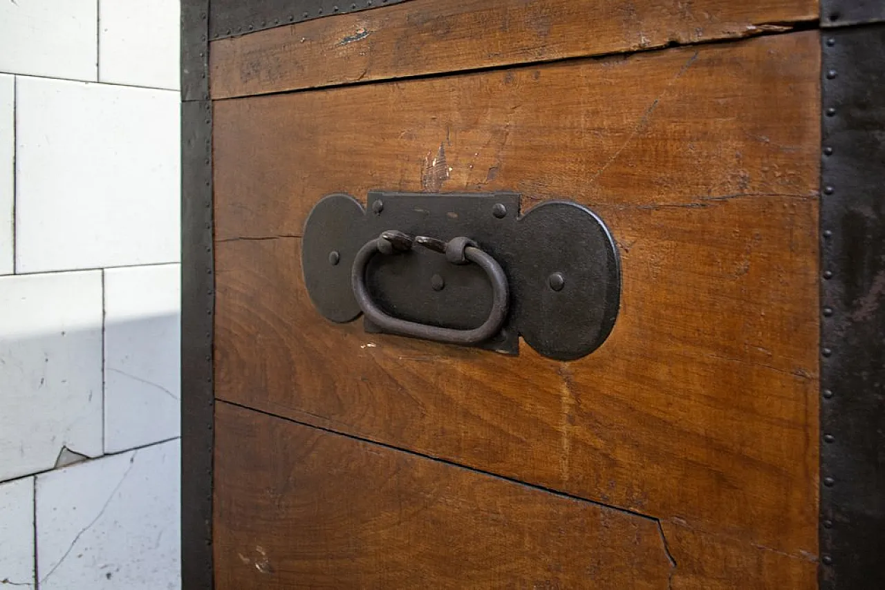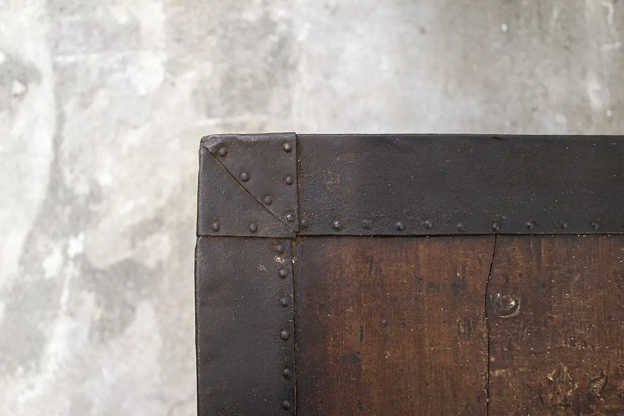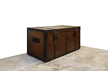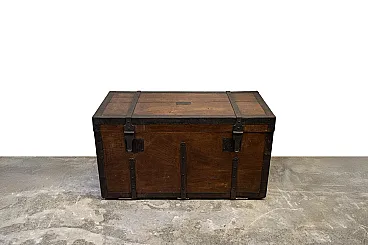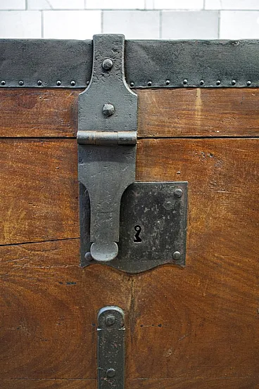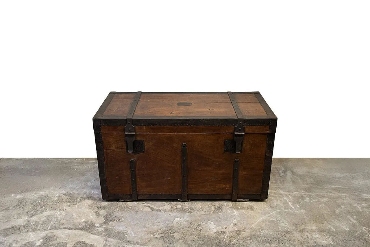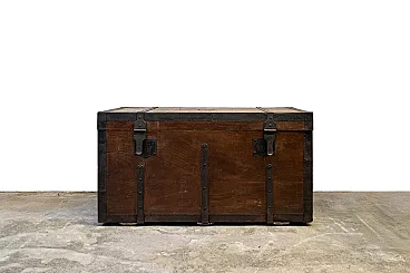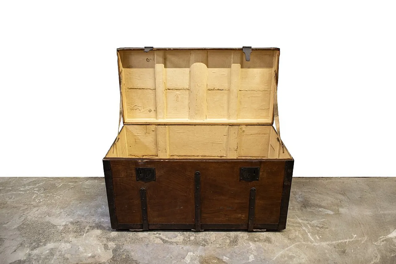 Baule in noce e ferro con maniglie di Metzger, inizio '900