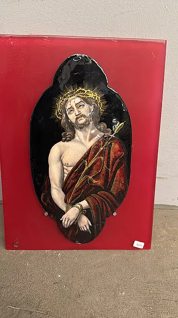 Placca dipinta smalto Limoges raffigurante Cristo, metà '800