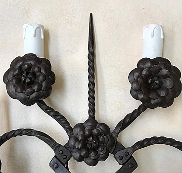 Applique stilizzata in ferro lavorato a mano con vaso di fiori, '900