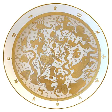 Morbelli 24k Gold and White Porcelain Wall Plate "Planisfero Celeste", Italy