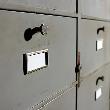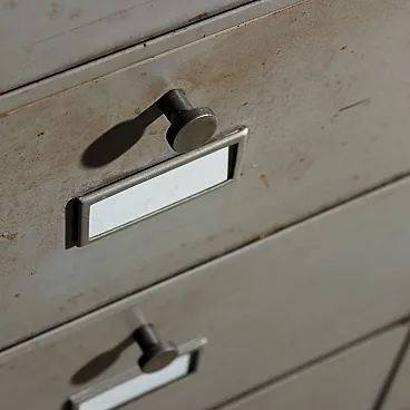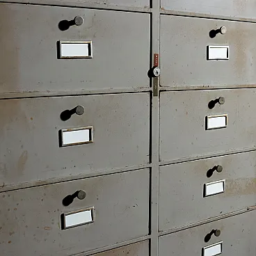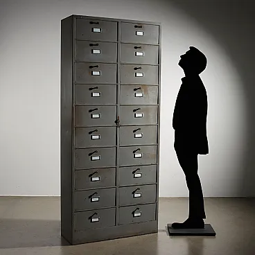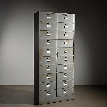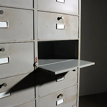 Mobile con vani ad apertura a ribalta, metallo smaltato.