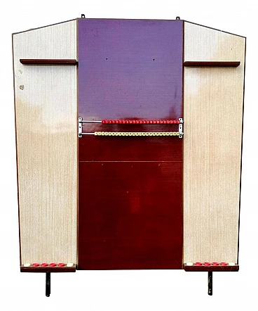 Pannello murale segnapunti da biliardo in legno e formica originale anni '60. Misura cm 178 di altezza per cm 148 di larghezza, in condizioni molto buone, come da foto.