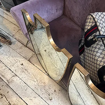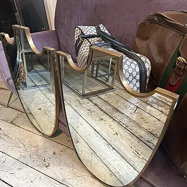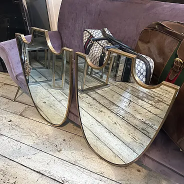 Coppia di specchi a scudo in ottone in stile Gio Ponti, anni '50