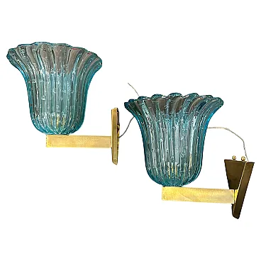 Coppia di applique in vetro di Murano blu, stile Barovier, anni '70