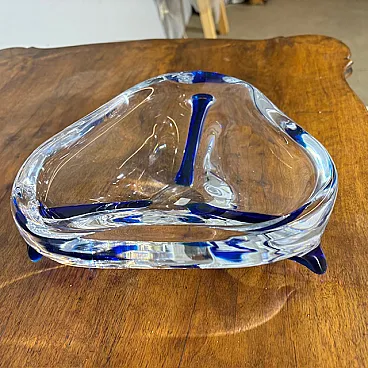 Centrotavola Murano trasparente e blu firmato alla base, 1970
