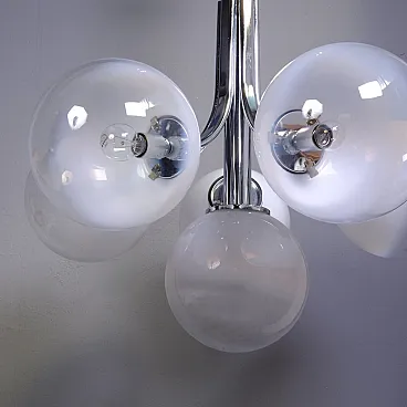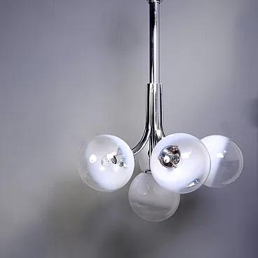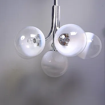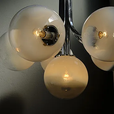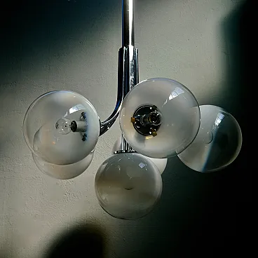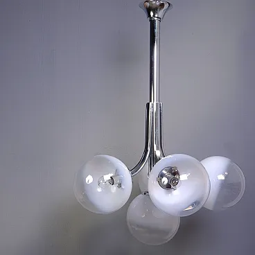 Lampadario da soffitto in metallo cromato e vetro di Murano, anni '70