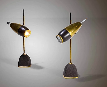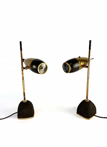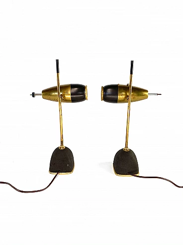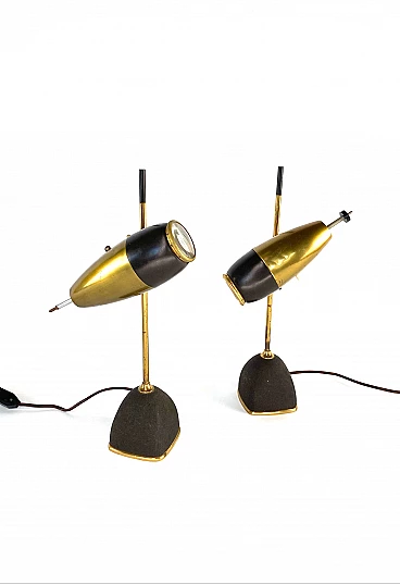 Coppia di lampade da tavolo 577 in ottone di Oscar Torlasco per Lumi Milano, anni '60