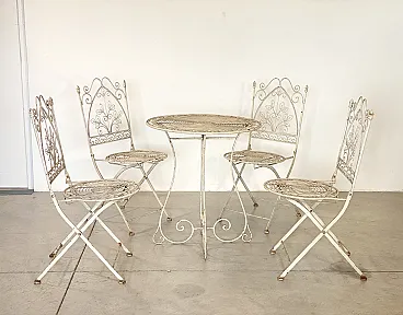 Set da giardino con 4 sedie pieghevoli e un tavolino anni '70