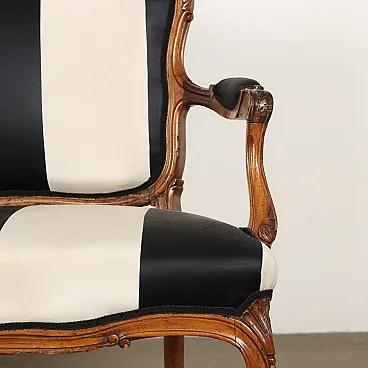 Divano in stile Barocchetto rivestito in tessuto a righe, '900