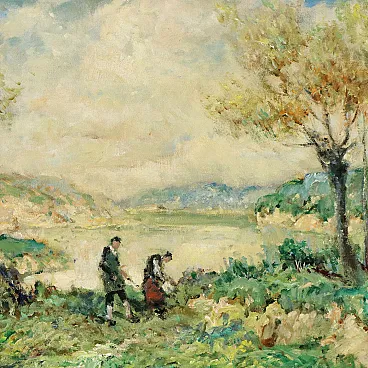 Paesaggio di campagna di Ivan Karpoff, olio su tela, anni '30