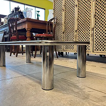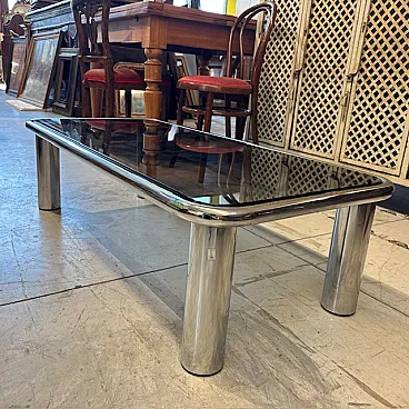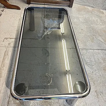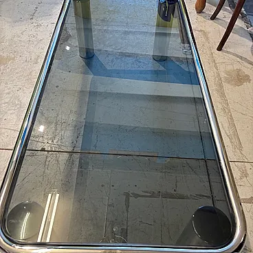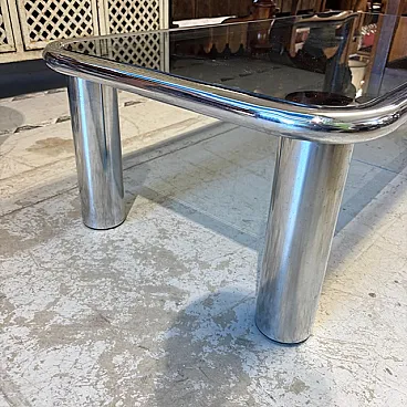 Tavolino da fumo cromato e vetro fumè modello Sesann Frattin, anni '70
