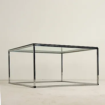 Tavolino in vetro e metallo cromato, anni '80