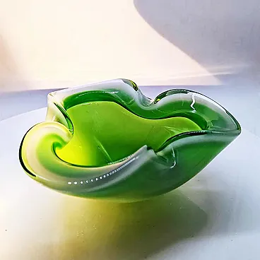 Posacenere o portacenere in vetro di Murano di Flavio Poli per Seguso. Splendidi colori verdi e bianchi sommersi Anni '60, prodotto in Italia. Condizioni eccellenti.