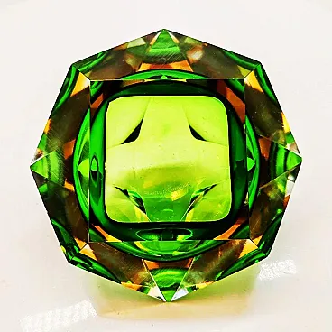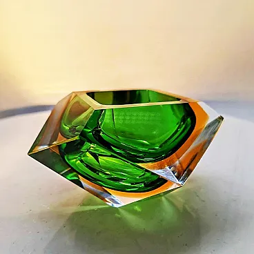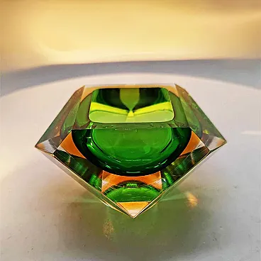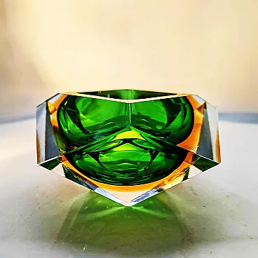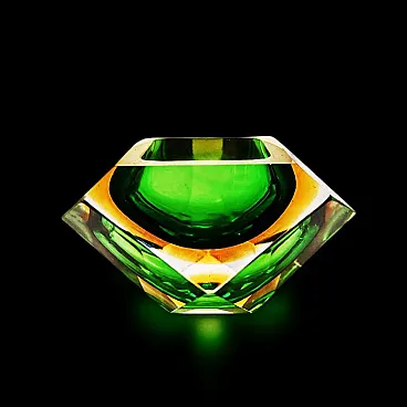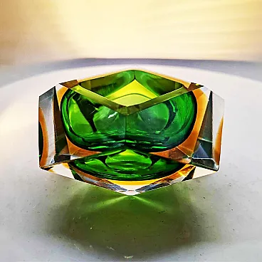 Posacenere in vetro di Murano di Flavio Poli per Seguso. Due colori sommersi - verde e giallo oro. Anni '60, Made in Italy, Ottime condizioni.
