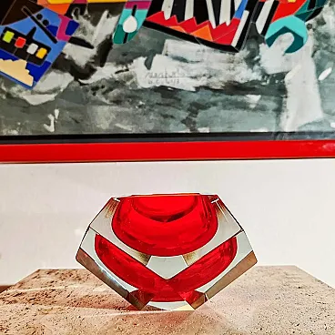 Posacenere o portacenere in vetro di Murano di Flavio Poli per Seguso. Splendido colore rosso sommerso. Anni '60, Made in Italy. Vetro di Murano Condizioni eccellenti.