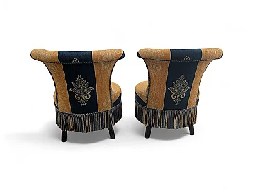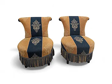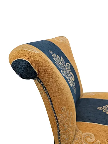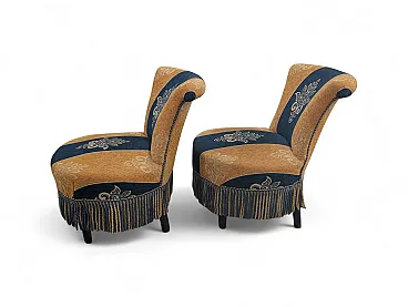 Coppia di poltroncine in tessuto giallo senape e blu, anni 50