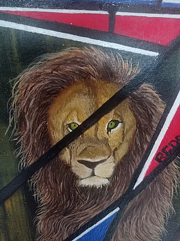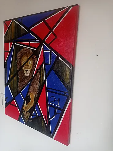 Dipinto astratto geometrico Leone, olio su tela, anni 2000