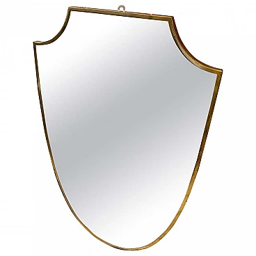 Specchio da parete a scudo in ottone alla maniera di Gio Ponti, anni '50
