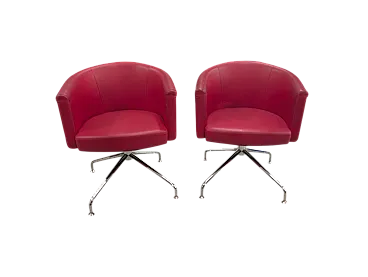 Coppia di poltroncine rosse in ecopelle, anni 2000