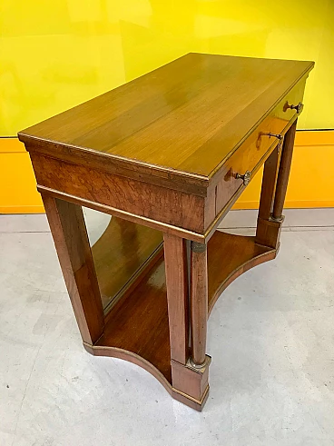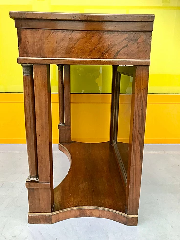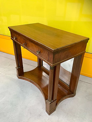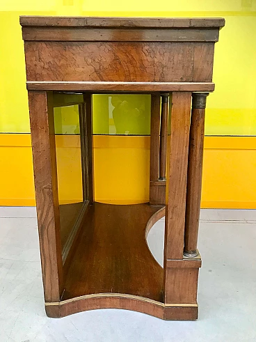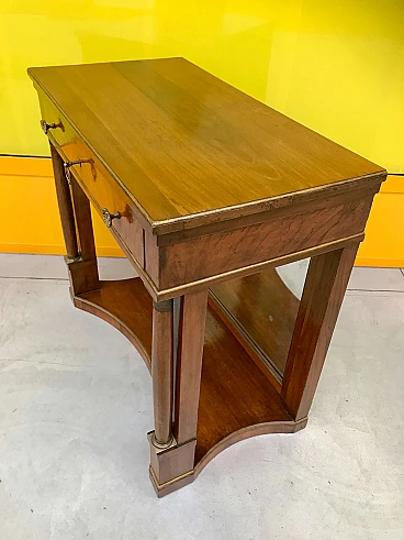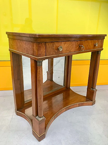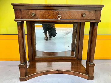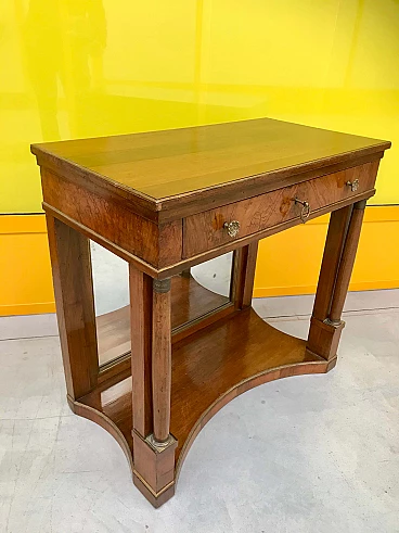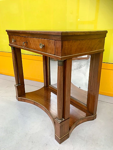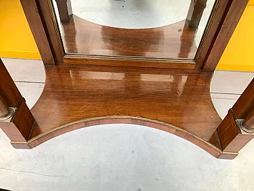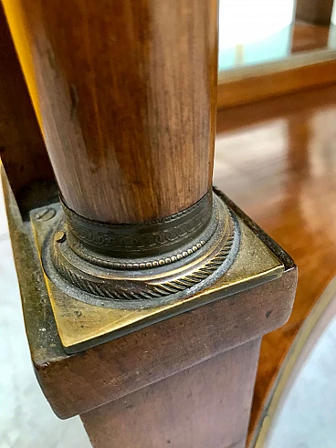 Consolle lombarda in stile Impero a colonne, in noce con bronzi e specchio al mercurio, metà ‘800