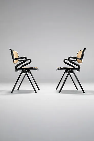 Futuristico e piuttosto alieno, questa coppia di sedie vertebra, progettata da E. Ambasz e G. piretti per Anonima Castelli sono uno spettacolo. Costruire un telaio in metallo, sedile di plastica e schienale e un'imbottitura di velluto, queste due sedie crescono in bellezza, più guardi e scopri i dettagli. Una volta che ti siedi anche, diventa chiaro cosa siano un capolavoro del design.