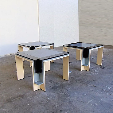 3 Tavoli da pranzo e gioco con top double face, anni '80
