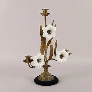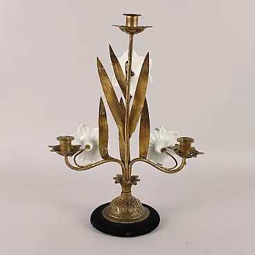 Candeliere in bronzo e ceramica, '800
