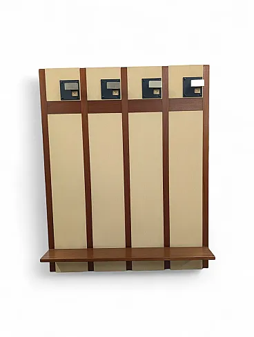 Appendiabiti da ingresso in ottone e legno, anni '70