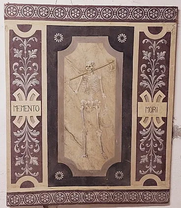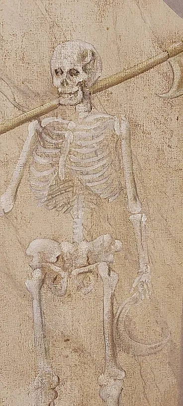 Memento Mori Grande scheletro dipinto a tempera su tela, '600