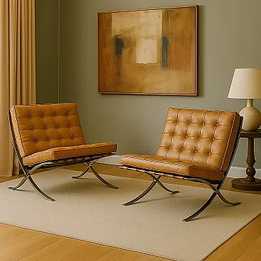 Coppia di Poltrone nello stile Barcelona, anni '70