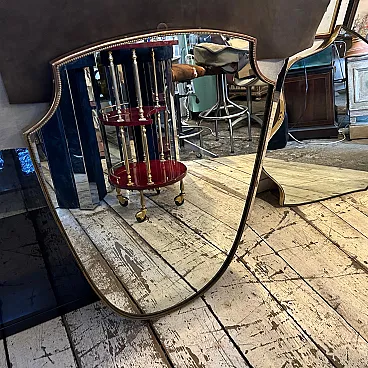 Specchio da parete a scudo in ottone di Gio Ponti, anni '60