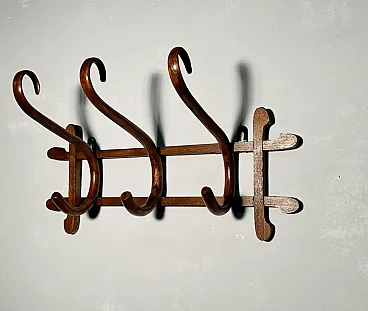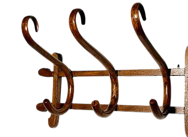 Raro ed elegante porta abiti da parete originale Thonet, risalente alla fine del XIX secolo, proveniente da Vienna, Austria. Realizzato in faggio curvato a vapore, tecnica iconica del design Thonet, questo pezzo d’epoca è stato completamente restaurato con attenzione e rispetto per i materiali originali.