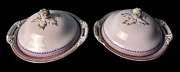 Coppia di zuppiere in porcellana inglese vittoriana, metà '800