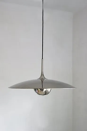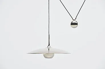 La lampada a sospensione controbilanciata Onos 55 di Florian Schulz è un classico del design tedesco degli anni '60 che unisce la funzionalità a un'estetica elegante e minimalista. È realizzata interamente in ottone, nichelato e lucidato. Onos 55 è una lampada che si inserisce perfettamente nell'estetica moderna di metà secolo, caratterizzata da semplicità di forme e funzionalità. Il suo design senza tempo la rende adatta sia ad ambienti moderni che classici, come sale da pranzo, soggiorni e uffici. Grazie alla sua funzionalità e al suo design elegante, la lampada Onos 55 rimane uno dei progetti più apprezzati nella storia del design dell'illuminazione moderna.