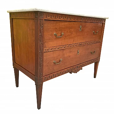 Comó a due cassetti in ciliegio scolpito e marmo bianco, ‘700