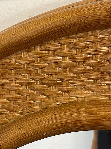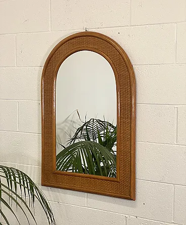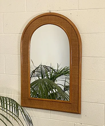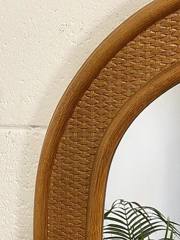 Specchio ad arco entro conrnice in bambù e vimini, anni '70