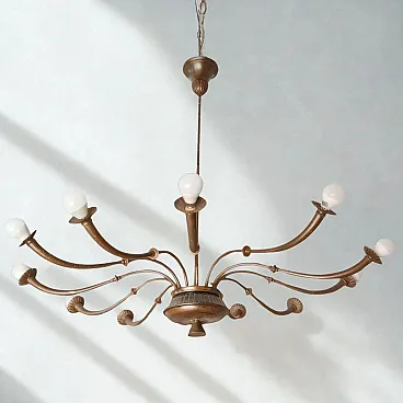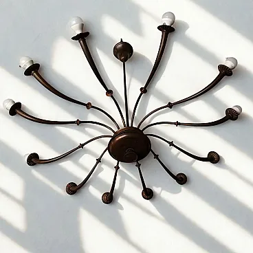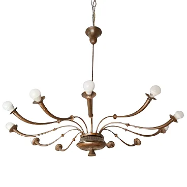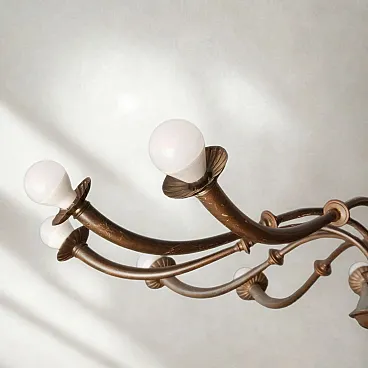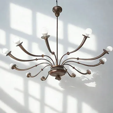 Lampadario a 12 luci in ottone Azucena di Caccia Dominioni, anni 50