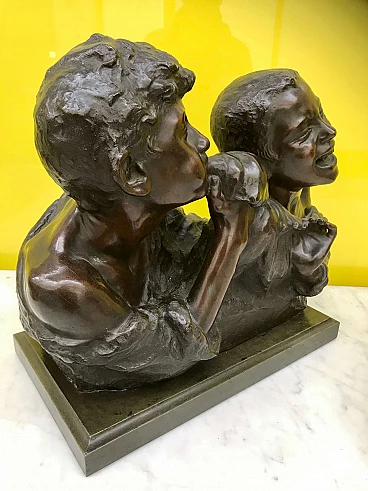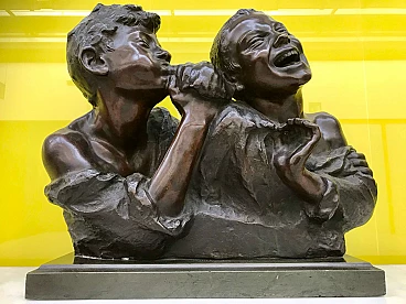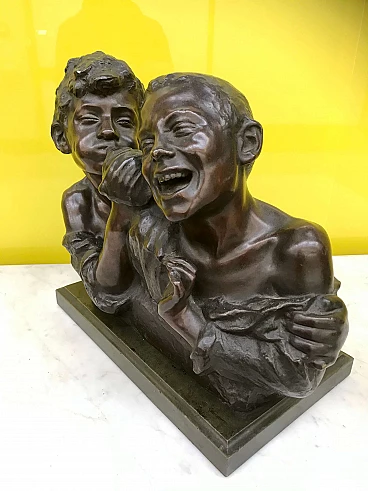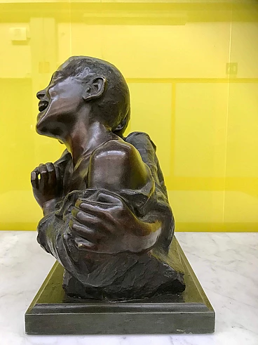 Scultura in Bronzo “Scugnizzi con conchiglia” di Aurisicchio Vincenzo originale modello grande, '800