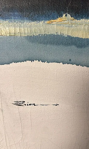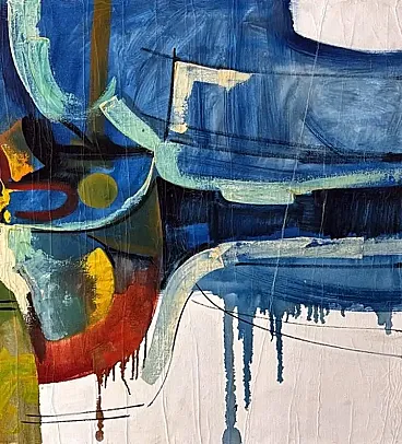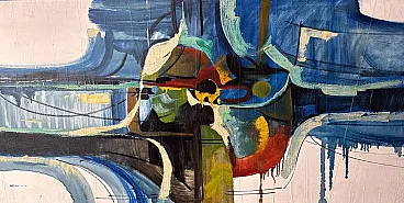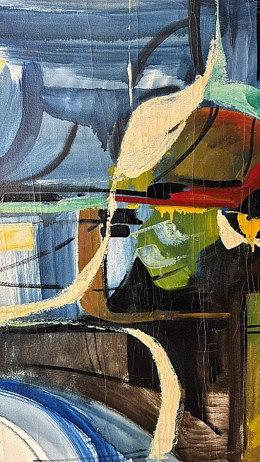 Si tratta di un dipinto a olio su tela, realizzato in Francia tra il 1980 e il 1985 con una tecnica mista che combina il pennello e la spatola. Recentemente, la tela è stata montata su un robusto telaio di legno e rifinita con un sottile bordo nero. L'artista ha utilizzato prima i pennelli tradizionali per abbozzare la composizione iniziale, modellando l'intero disegno con tratti fluidi e sicuri. La pittura non è solo un'esibizione di abilità tecnica; piuttosto, l'artista trasmette la propria essenza interiore attraverso il linguaggio dei colori e delle forme. L'opera è stata poi rifinita con la tecnica della spatola, applicando spessi strati di pittura per creare profondità e una superficie ricca e strutturata. Lo stile pittorico dell'artista si ispira all'Arte Astratta, un movimento che non raffigura la realtà ma crea immagini che esprimono concetti attraverso il gioco di forme, colori e linee. L'arte astratta semplifica progressivamente l'immagine fino a renderla irriconoscibile, assegnando ai colori significati simbolici che non sono immediatamente evidenti senza interpretazione. Il principio fondamentale dell'arte astratta è che l'arte non deve imitare la realtà. Questo pezzo in particolare rientra nel regno dell'astrazione lirica, che concede all'artista la completa libertà di esplorare la propria immaginazione e il proprio mondo interiore. Il dipinto non ha un titolo e si presenta come una composizione di macchie di colore che riflettono le emozioni dell'artista, permettendogli di esprimere liberamente la propria creatività senza vincoli o convenzioni. L'arte astratta nacque ufficialmente nel 1910 quando il pittore russo Wassily Kandinsky creò un acquerello, oggi considerato la prima opera d'arte astratta della storia dell'arte (attualmente conservato al Centre Pompidou di Parigi). Da allora, la pittura astratta si è evoluta in vari stili e rimane ancora oggi un movimento artistico rilevante. Il dipinto davanti a te, con le sue forme dinamiche e la palette di colori vivaci, trasmette un senso di leggerezza e movimento. L'arte astratta, una delle principali tendenze artistiche del XX secolo, si definisce per il suo rifiuto della rappresentazione figurativa, concentrandosi invece su forme e colori scelti esclusivamente per il loro valore espressivo. Più che una semplice rivoluzione visiva, l'espressione astratta è stata un passo avanti nella reimmaginazione dell'arte come mezzo per trasformare e migliorare il mondo. Il dipinto è firmato, ma non abbiamo informazioni sull'artista. Tuttavia, garantiamo il suo eccezionale valore estetico e la sua energia accattivante. Con il suo stile fresco ed espressivo e il suo forte appeal decorativo, questo pezzo valorizza senza sforzo qualsiasi spazio abitativo. Il dipinto è in ottime condizioni. Dimensioni: Larghezza: 150 cm Altezza: 76 cm Profondità: 2 cm