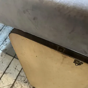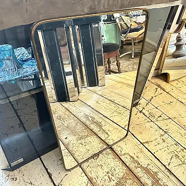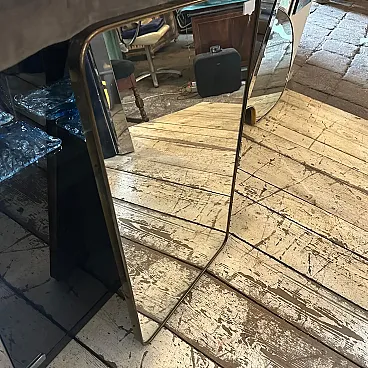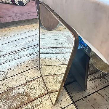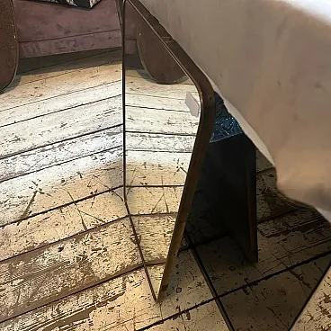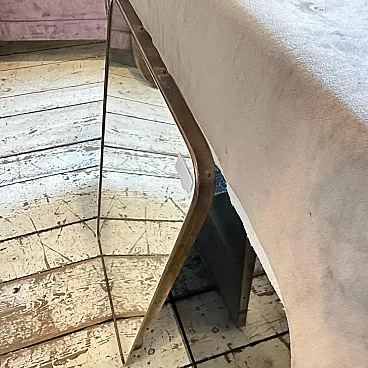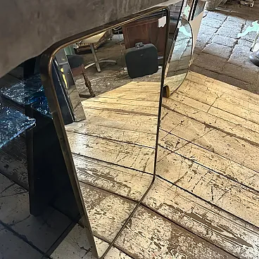 Un incredibile specchio da parete a forma di biscotto della metà del secolo scorso, realizzato a mano in Italia negli anni Cinquanta alla maniera di Gio Ponti, che utilizzava questi specchi da parete per arredare le case più prestigiose di Milano negli anni Cinquanta. La cornice in ottone dello specchio è in patina originale, il vetro originale presenta normali segni di uso e di età, si prega di vedere tutte le foto non solo la prima. Questo specchio da parete in ottone a forma di biscotto è un pezzo straordinario ed elegante che cattura l'essenza del design di metà secolo, riflettendo l'estetica elegante e sofisticata che ha definito l'epoca. Lo specchio è realizzato in ottone, un materiale comunemente utilizzato a metà del secolo scorso per la sua durata e il suo fascino lussuoso. L'ottone emana una luce calda e invitante, aggiungendo un tocco di opulenza a qualsiasi spazio. La cornice dello specchio presenta linee fluide e forme caratteristiche delle opere di Gio Ponti. Il design dello specchio è funzionale e artistico allo stesso tempo. L'ampia superficie riflettente offre un ampio spazio per la visione personale, mentre la cornice funge da elemento decorativo che migliora l'impatto visivo complessivo. La struttura in ottone è lucidata e mette in risalto la bellezza naturale del materiale. La sua superficie liscia ed elegante crea un contrasto accattivante con il vetro specchiato, amplificando le proprietà riflettenti dello specchio. La combinazione di ottone massiccio e vetro riflettente produce un armonioso gioco di luci e ombre, migliorando ulteriormente l'estetica del pezzo. Questo specchio da parete non è solo un oggetto funzionale ma anche un'opera d'arte che incarna l'eleganza e la raffinatezza del design di metà secolo. Emana un fascino senza tempo che si integra perfettamente con vari stili di interni, da quelli contemporanei a quelli di ispirazione retrò. Appeso in salotto, in camera da letto o in corridoio, questo specchio diventa un punto focale che eleva l'ambiente e aggiunge un tocco di fascino vintage.