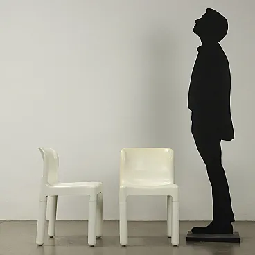 4 Sedie 4875 bianche di Carlo Bartoli per Kartell in pastica, anni '70