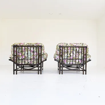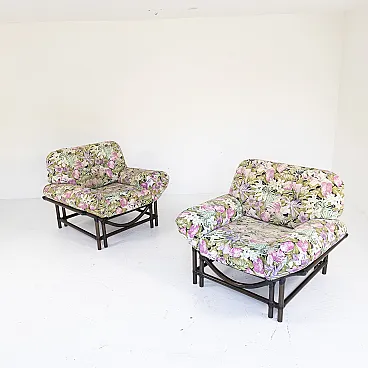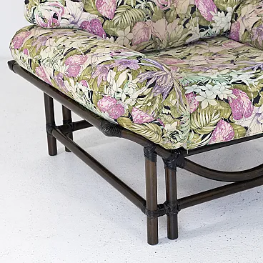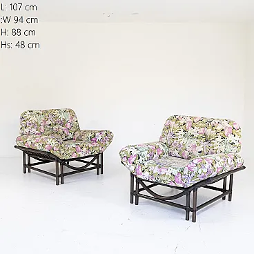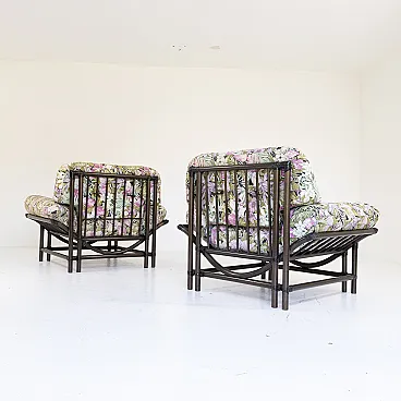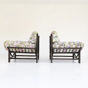 Coppia di poltrone in rattan con cuscini floreali, anni ’70