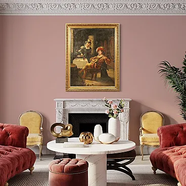 Dipinto italiano scena d'interno, '900