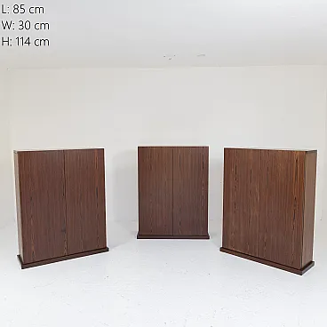 3 Librerie modulari ad ante in legno di palissandro, anni ’70
