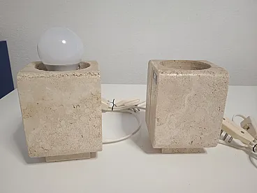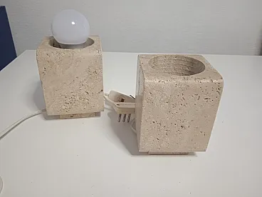Coppia di lampade da tavolo Cerri Nestore in travertino, anni '70